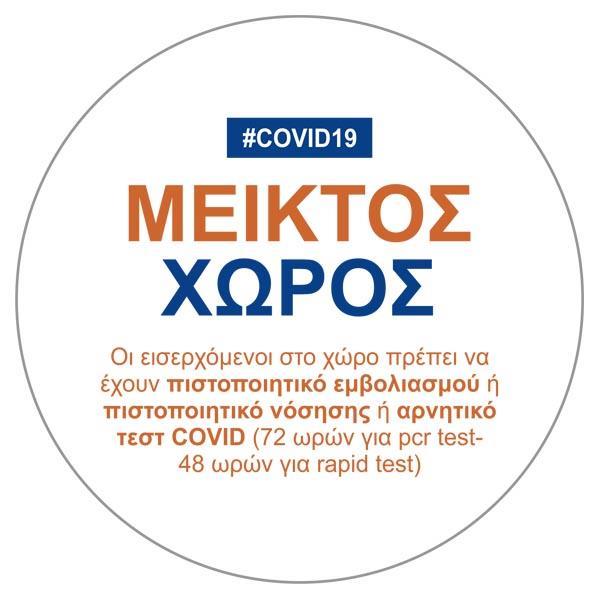 Next αυτοκόλλητο στρογγυλό “Covid19 μεικτός χώρος” διαμέτρου Ø9εκ.