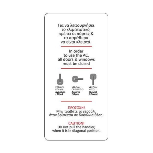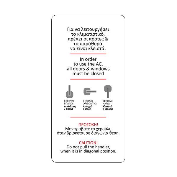 Αυτοκόλλητο “Για να λειτουργήσει το κλιματιστικό, πρέπει οι πόρτες και τα παράθυρα να είναι κλειστά.”