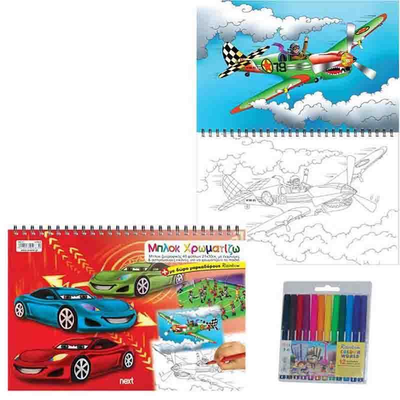 Next μπλοκ χρωματίζω για αγόρια με μαρκαδόρους 21×30εκ. 40φύλ.