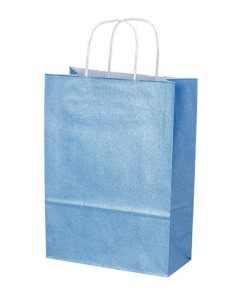 Next χάρτινη τσάντα glitter γαλάζια με στριφτό χερούλι Υ41x32x12εκ. Δυνατότητα εκτύπωσης