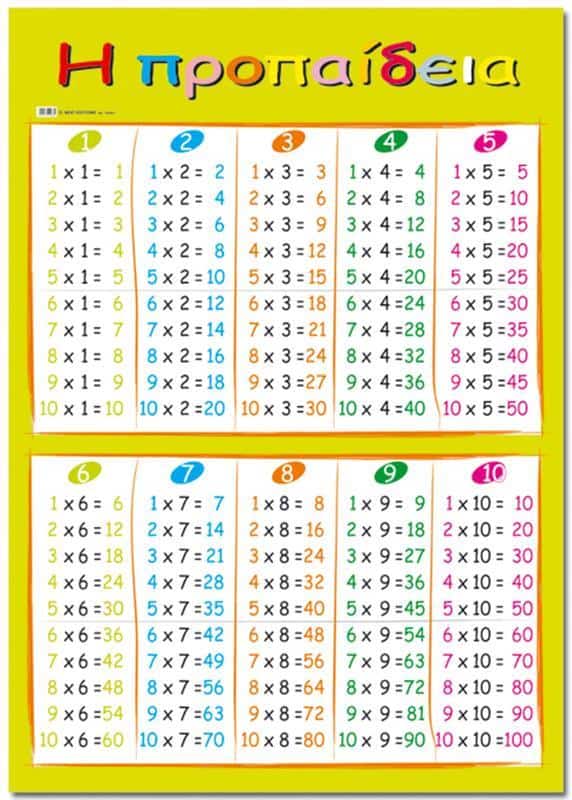 Εκπαιδευτική αφίσα “Η προπαίδεια”.