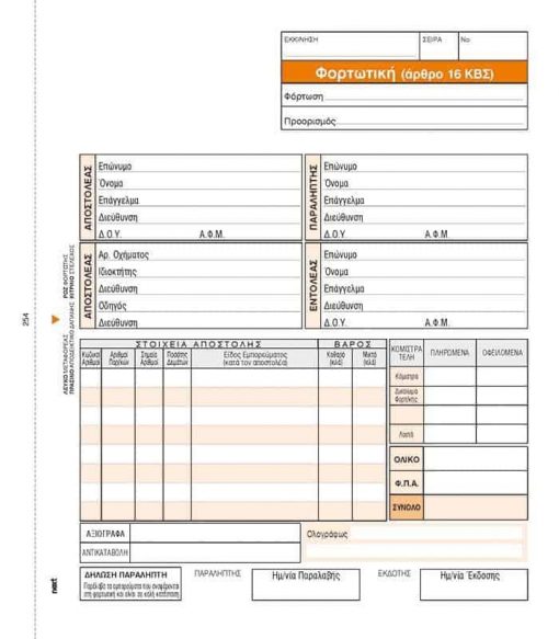 Φορτωτική, τετραπλότυπη 4×50 φύλλα.