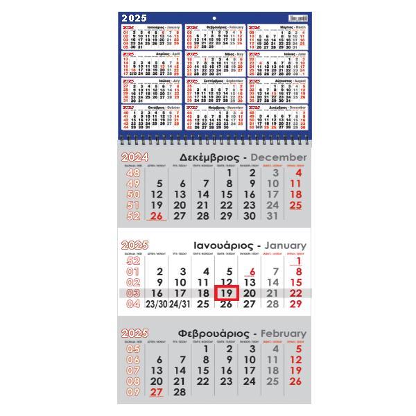 Next ημερολόγιο τοίχου 2025 τριμηνιαίο 12φ. 33×60εκ.