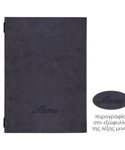 Μενού εστιατορίων με καπάκι από πυρογραφική δερματίνη, με κρυφό λάστιχο.