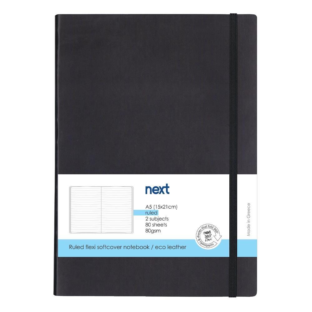 Next Premium μαύρο τετράδιο ριγέ flexi λάστιχο 2 θέματα 80 φύλλα 14×21εκ. Δυνατότητα εκτύπωσης