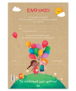 Next σχολικό ενθύμιο μονόφυλλο “Παιδιά με μπαλόνια” 23×33εκ.