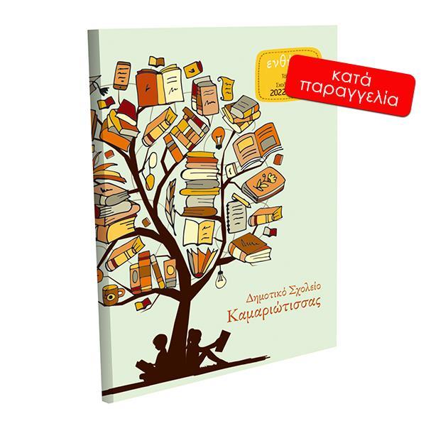 Σχολικό ενθύμιο πολυσέλιδο πολυτελείας “Δέντρο της Γνώσης”. Με σκληρό καπάκι. Βιβλιοδεσία πολυτελείας-καλλιτεχνική. Εσωτερικό σπιράλ. Εσωτερικό χαρτόνι βέλβετ 200γρ. 20σελίδες. Περιλαμβάνει ψηφιακές φωτογραφίες τυπωμένες: α)της τάξης: 13×18εκ. β)του δασκάλου: 6×7εκ. γ)πορτραίτο του μαθητή: 17×20εκ. δ)μίνι φωτογραφίες όλων των μαθητών: 3.5×4.5εκ. Διαστάσεις Λευκώματος: 21×29εκ. κλειστό. 29×42εκ. ανοιχτό.