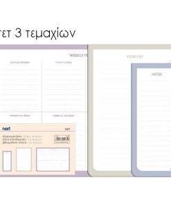 Διαστάσεις: Weekly Planner – 21xΥ30εκ., Notes – 8xΥ18εκ., To do list – 15xΥ21εκ.