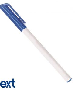 Στυλό διαρκείας 1mm με λευκό σώμα και μπλε καπάκι.
