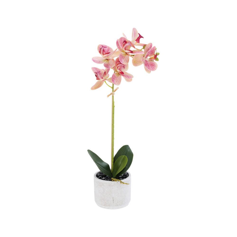 Ορχιδέα ροζ τεχνητή Υ45x11x11εκ. σε λευκή γλάστρα