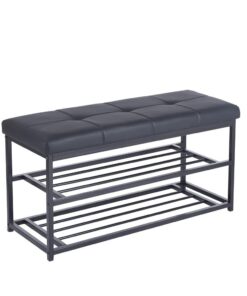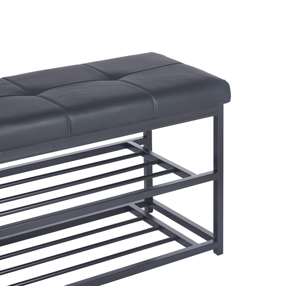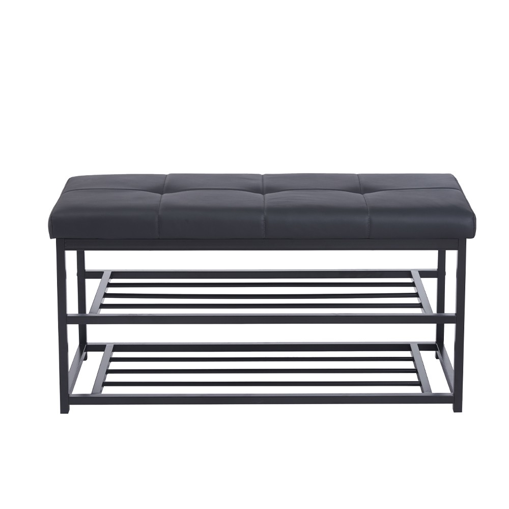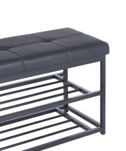 Το παγκάκι παπουτσοθήκη Nextdeco Urban συνδυάζει πρακτικότητα και κομψό σχεδιασμό. Διαθέτει άνετο μαλακό κάθισμα από δερματίνη και μεταλλικό σκελετό με ηλεκτροστατική βαφή μαύρου ματ χρώματος. Οι δύο χαμηλές μεταλλικές επιφάνειες παρέχουν χώρο για την αποθήκευση παπουτσιών, ώστε να κρατάς τον χώρο σου οργανωμένο και ταυτόχρονα να απολαμβάνεις ένα άνετο κάθισμα. Ιδανικό για το χωλ, την είσοδο ή το υπνοδωμάτιο.