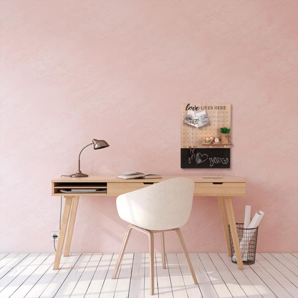 Πίνακας σημειώσεων φελλού «Love lives here» με1 ράφι και μαυροπίνακα.