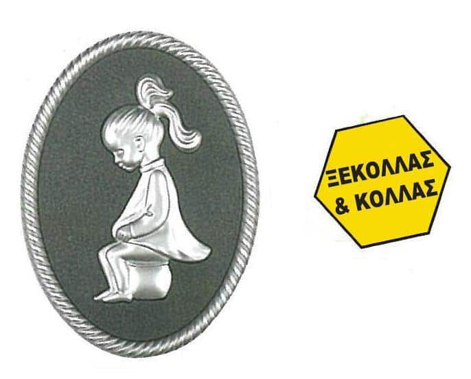 Πινακίδα σήμανσης wc γυναικών, ασημί, οβάλ 110x150mm