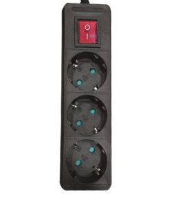 Πολύμπριζο 3θέσεων μαύρο με διακόπτη, 1,5m μήκος και προστασία επαφών