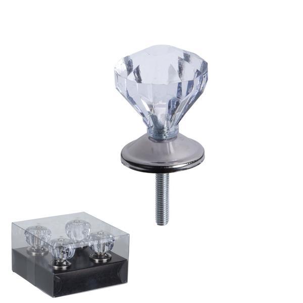 Πόμολα διάφανα σετ 4 τμχ Ø3εκ. σε σχήμα brillant