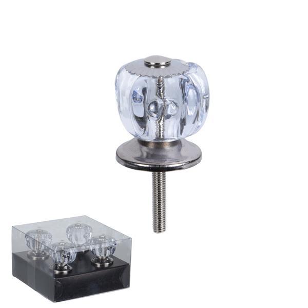 Πόμολα διάφανα σετ 4 τμχ Ø3εκ. σε σχήμα τετράγωνο