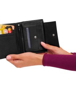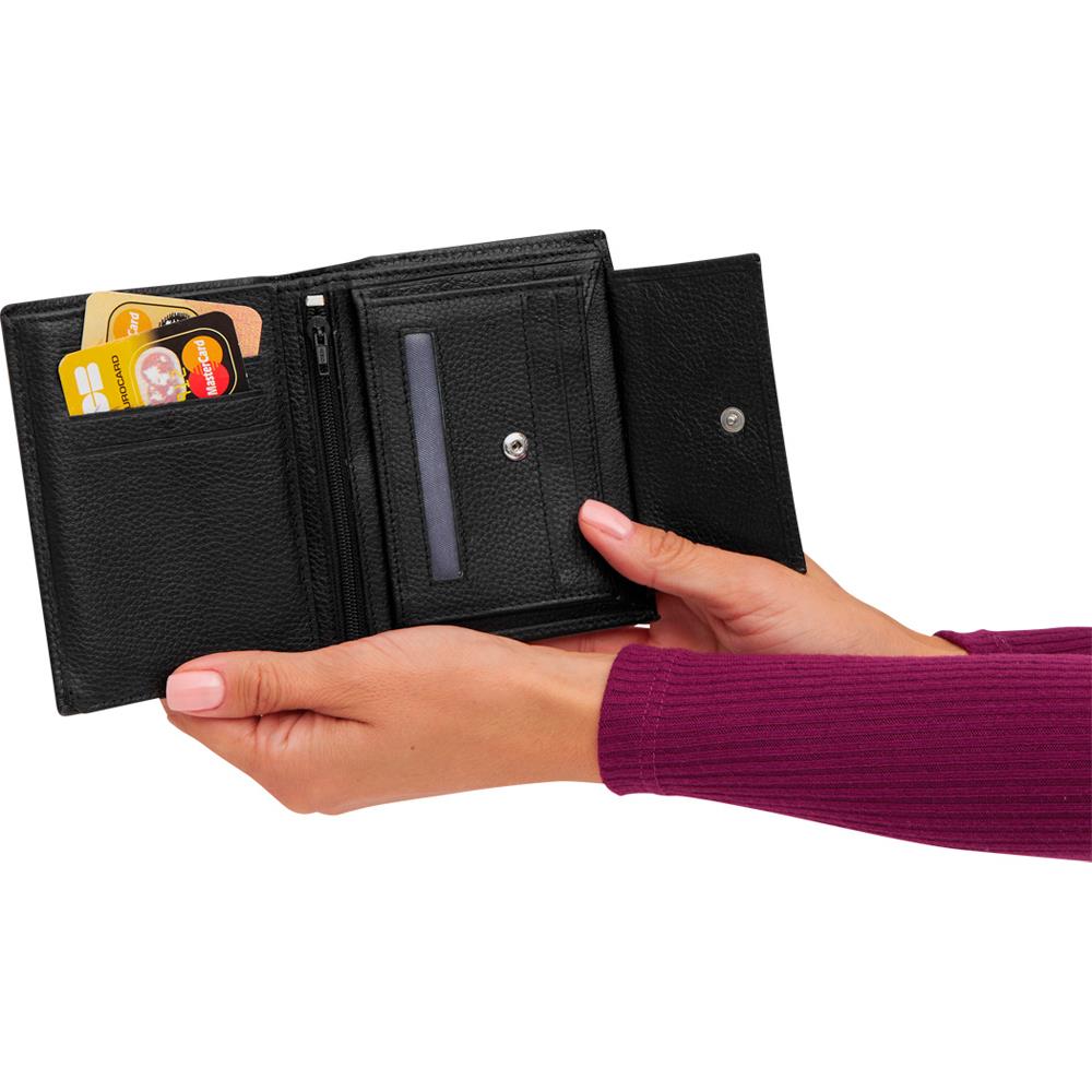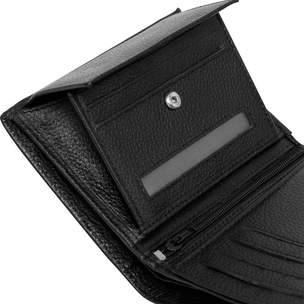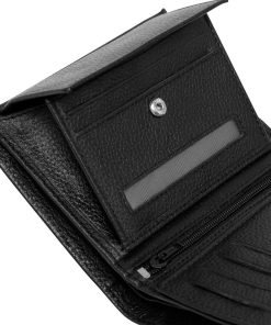 Δερμάτινο πορτοφόλι με διάφορες τσέπες και μια τσέπη για κέρματα διάστασης: 11,8 x 9,2 x 1,5 cm Υλικό: Δέρμα Χρώμα: Μαύρο