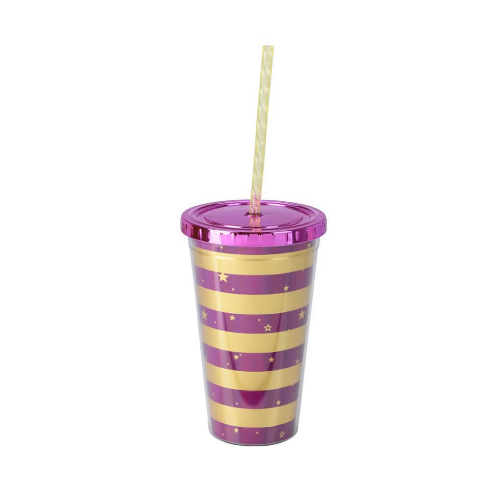 Ποτήρι με καλαμάκι και διπλό τοίχωμα Υ16xØ10εκ.