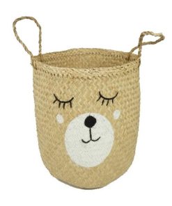 Ψάθινο καλάθι BOHO από rattan με φιγούρα ζωάκι Ø35×37εκ.