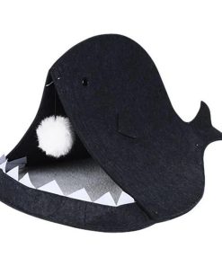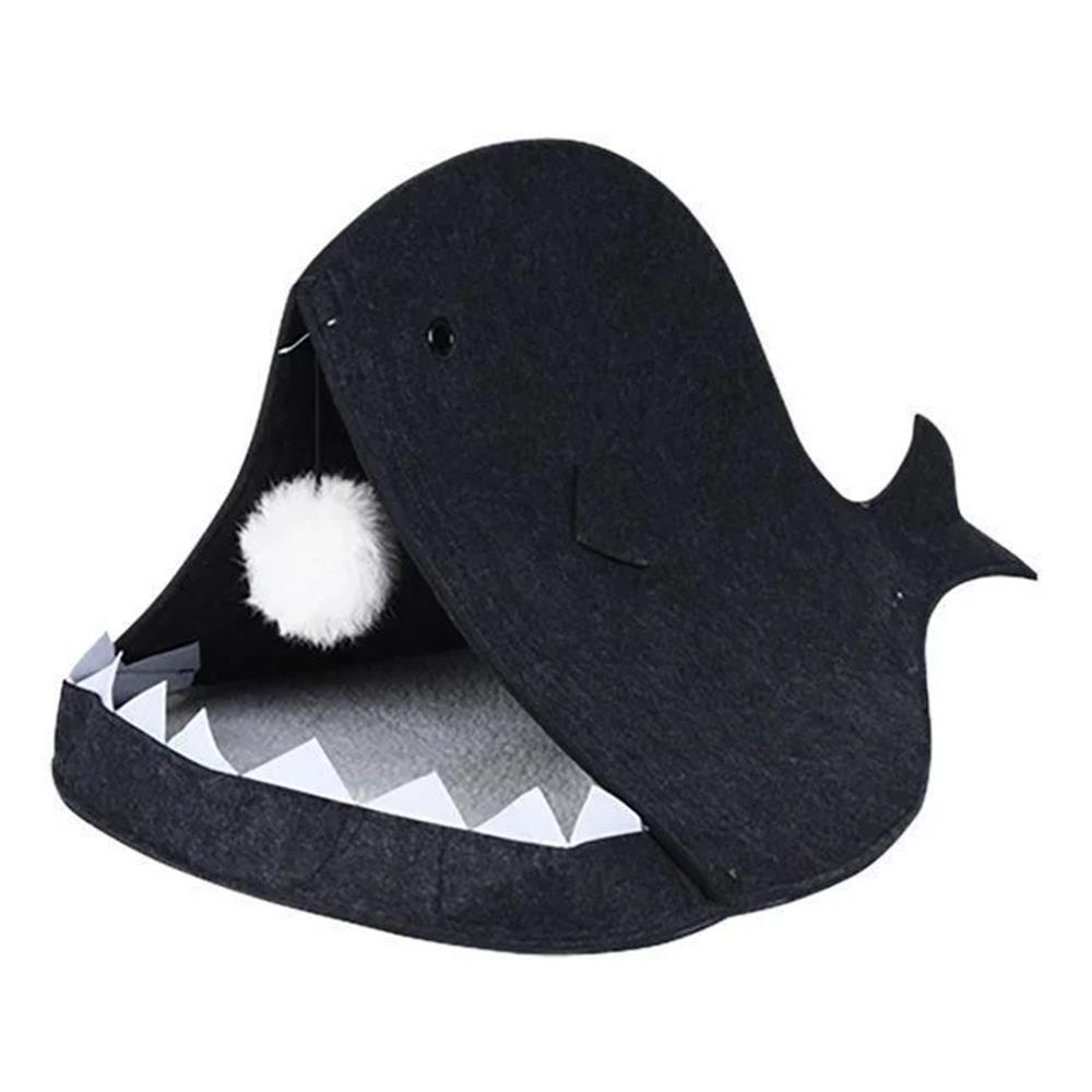Υπέροχο πτυσσόμενο σπιτάκι για τα αγαπημένα μας γατάκια απο τσόχα, με εσωτερική μαλακή επένδυση, σε σχήμα ψαριού και με ενσωματωμένο κρεμαστο παιχνίδι για το μικρό σας τετράδοπο.