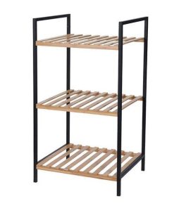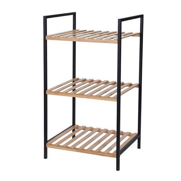 Ραφιέρα με μαύρο μεταλλικό σκελετό και 3 ράφια από bamboo.
