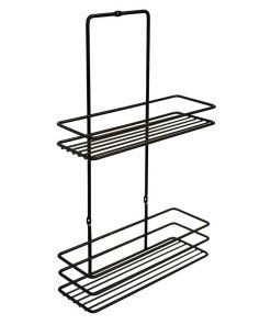 Ραφιέρα μπάνιου με δύο ράφια, βαρέως τύπου, μεταλλική σε μαύρο χρώμα.