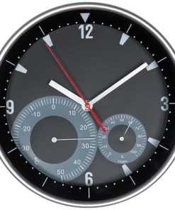 Ρολόι τοίχου θερμόμετρο-υγρόμετρο μαύρο καντράν Ø25,3εκ.