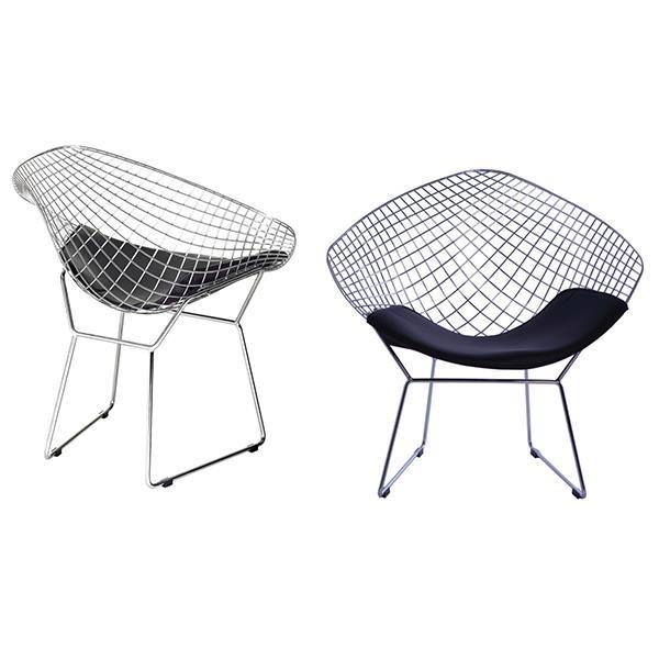 SAXON πολυθρόνα μεταλλική με πλέγμα από χρώμιο και μαξιλάρι μαύρο από pu.