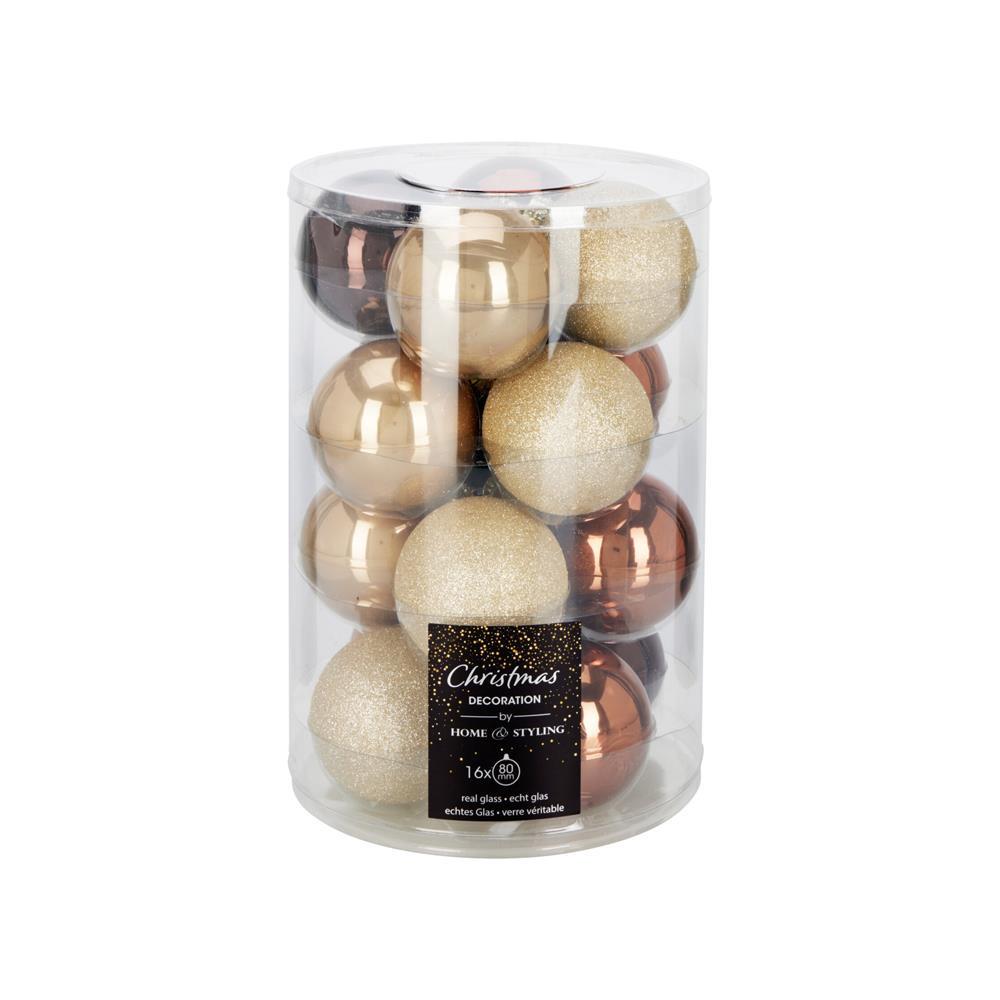 Σετ 16 χριστουγεννιάτικες γυάλινες μπάλες amber γκλίτερ Ø8εκ.