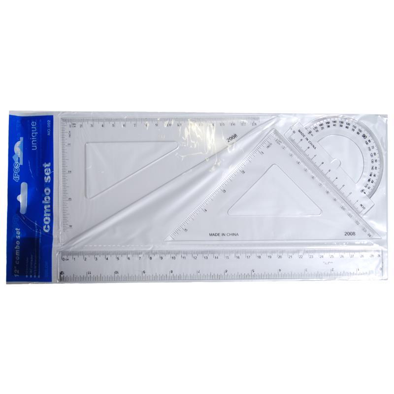 Το σετ περιλαμβάνει 1 χάρακα 30εκ., 2 τρίγωνα και 1 μοιρογνωμόνιο.
