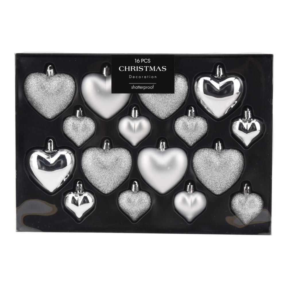 Σετ χριστουγεννιάτικα στολίδια-καρδιές 16 τεμαχίων, 3 σχεδίων ασημί