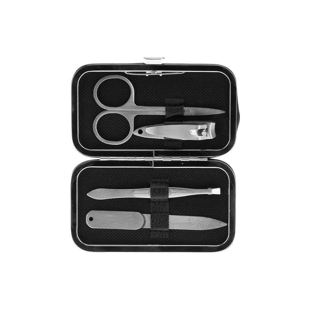 Περιλαμβάνει από ανοξείδωτο ατσάλι, λίμα, ψαλίδι νυχιών, τσιμπίδα και νυχοκόπτη.