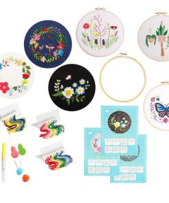 Το σετ περιλαμβάνει βελόνα, τελάρο κεντήματος, νήματα, και ύφασμα με σχέδιο κεντήματος.