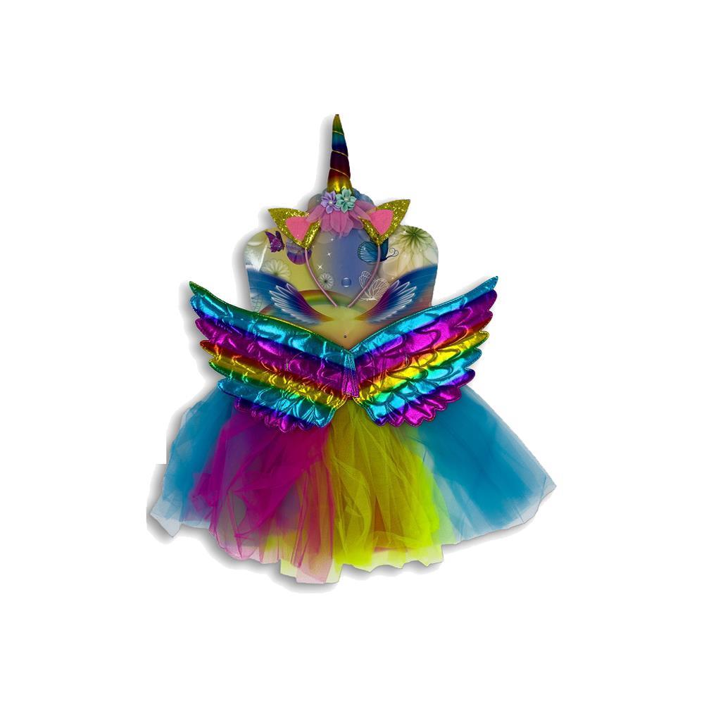 Σετ μονόκερος με φόρεμα, στέκα και φτερά πολύχρωμο