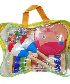Το σετ περιλαμβάνει ένα μεταλλόφωνο 8 τόνων Υ3,4×24,5χ8εκ., ένα ντέφι 15εκ., 2 μαράκες 20εκ. και κουδουνάκια.