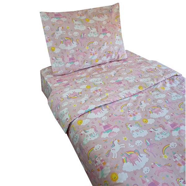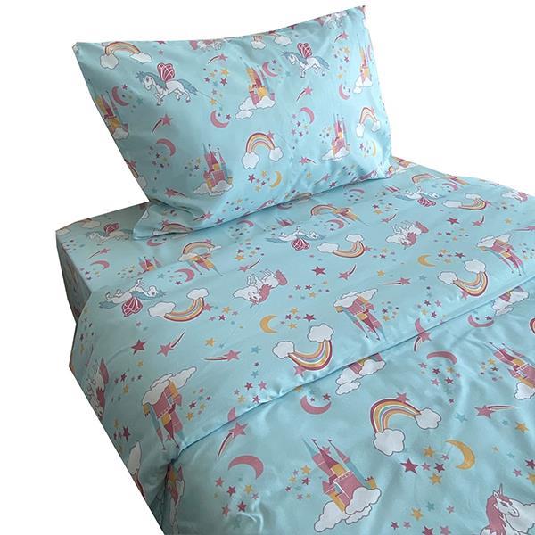 Σετ παιδικά σεντόνια μονά Castle Unicorn από 100% βαμβάκι 175×260εκ.