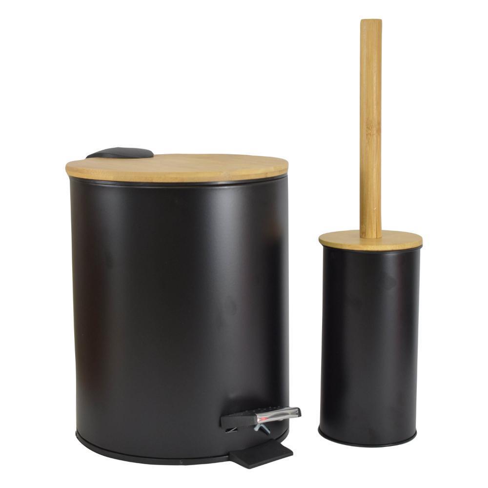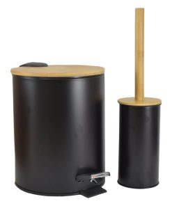 Σετ κάδος απορριμμάτων 5lt – πιγκάλ μεταλλικό με ξύλινο καπάκι μαύρο χρώμα.