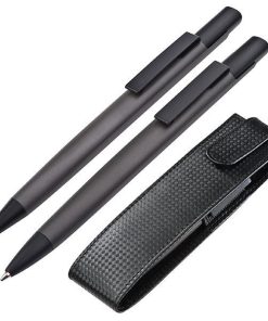 Σετ στυλό – μολύβι γκρι, σε πολυτελή υφασμάτινη carbon θήκη δώρου 16,7×4,5×2.5εκ.