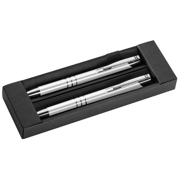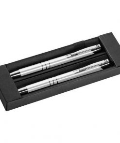 Σετ στυλό και μολύβι μεταλλικό λευκό.
