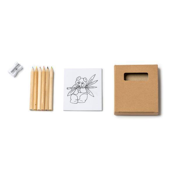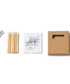 Σετ ζωγραφικής με 6 χρωματιστές ξυλομπογιές και ξύστρα. Περιέχει 6 σελίδες με σχέδιο για να τις χρωματίσουν τα παιδιά. Διαστάσεις: 7,4x9x1,5εκ