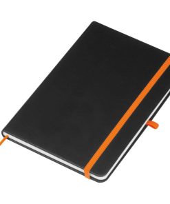 Κομψό σημειωματάριο Α5 με κάλυμμα από δερματίνη, ιδανικό για επαγγελματική χρήση. Διαθέτει 192 γραμμωτές σελίδες, έγχρωμο σελιδοδείκτη, ελαστική θήκη για στυλό και ελαστικό κλείσιμο για ασφαλή συγκράτηση. Κατάλληλο και για διαφημιστικό δώρο. Με χάραξη laser, το logo σας, γίνεται ίδιο χρώμα με το λάστιχο. Διαστάσεις 14×21εκ.