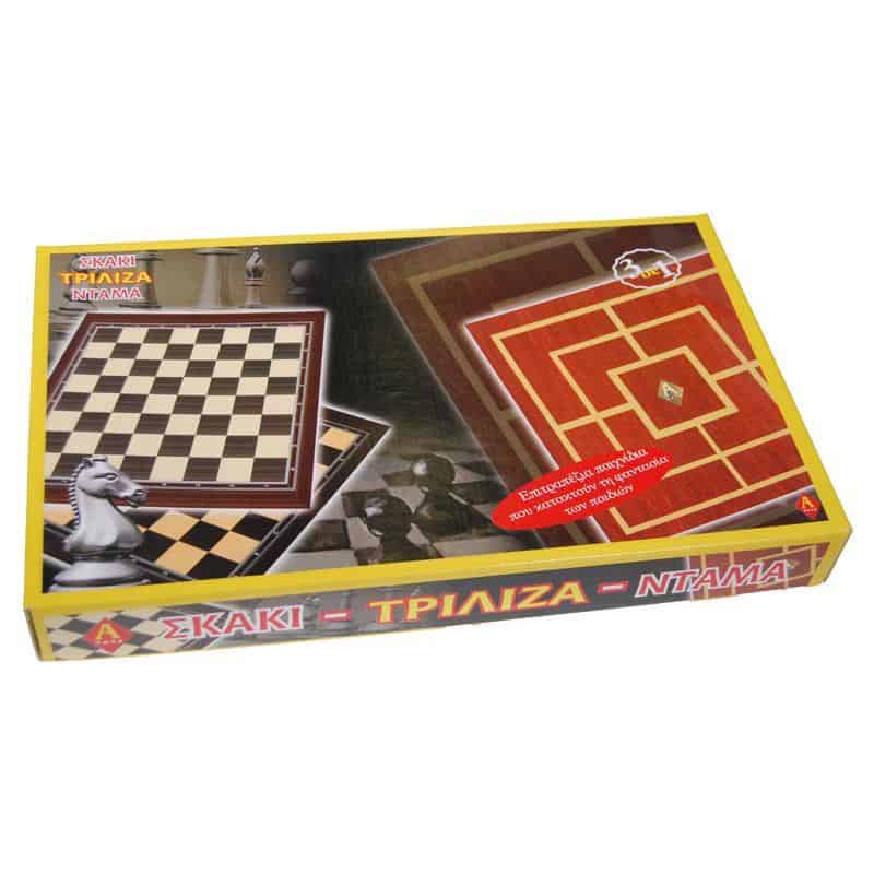 Σκάκι-ντάμα-τρίλιζα 32×32εκ.