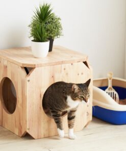 Σπιτάκι γάτας- σκαμπό Nextdeco Natural μασίφ ξύλο 40x40x40εκ.