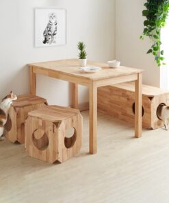 Σπιτάκι γάτας Nextdeco Natural μασίφ ξύλο.To πολυλειτουργικό, eco-friendly έπιπλο που μπορεί να χρησιμοποιηθεί τόσο από ανθρώπους όσο και από κατοικίδια ταυτόχρονα. Όταν υπάρχουν επισκέπτες, μπορεί να χρησιμοποιηθεί ως σκαμπό, ενώ οι τρύπες στις τέσσερις πλευρές είναι σχεδιασμένες για να επιτρέπει στις γάτες να μπαίνουν και να βγαίνουν. Μπορεί επίσης να στοιβάζεται για εξοικονόμηση χώρου και να μετατραπεί σε ράφι για να σκαρφαλώνουν οι γάτες. Όταν τοποθετούνται δύο το ένα δίπλα στο άλλο, μπορούν να χρησιμοποιηθούν ως τραπεζάκι σαλονιού για δουλειά, διάβασμα κ.λπ., ενώ η γάτα μπορεί να περνάει από κάτω. Περιλαμβάνει ξύλινο στύλο που το καθιστά πιο σταθερό όταν στοιβάζεται. Κατασκευασμένο από 100% μασίφ ξύλο καουτσούκ. Γνώρισε τη φιλοσοφία διακόσμησης Nextdeco Natural. Μία πλήρης γκάμα προϊόντων επίπλωσης, διακόσμησης και οργάνωσης σπιτιού από μασίφ ξύλο καουτσούκ με minimal αισθητική που αντέχουν στον χρόνο και ομορφαίνουν την ζωή σου.