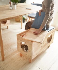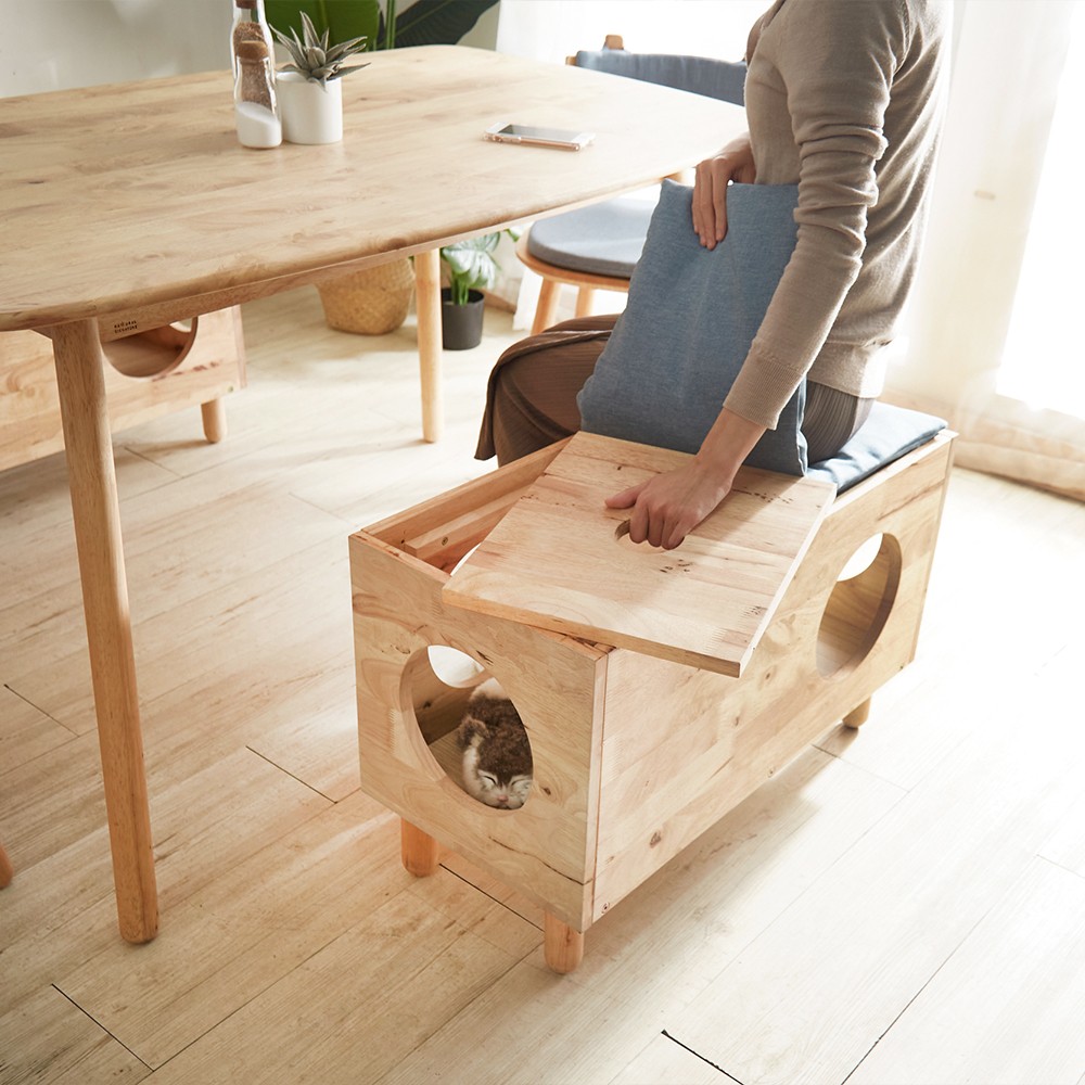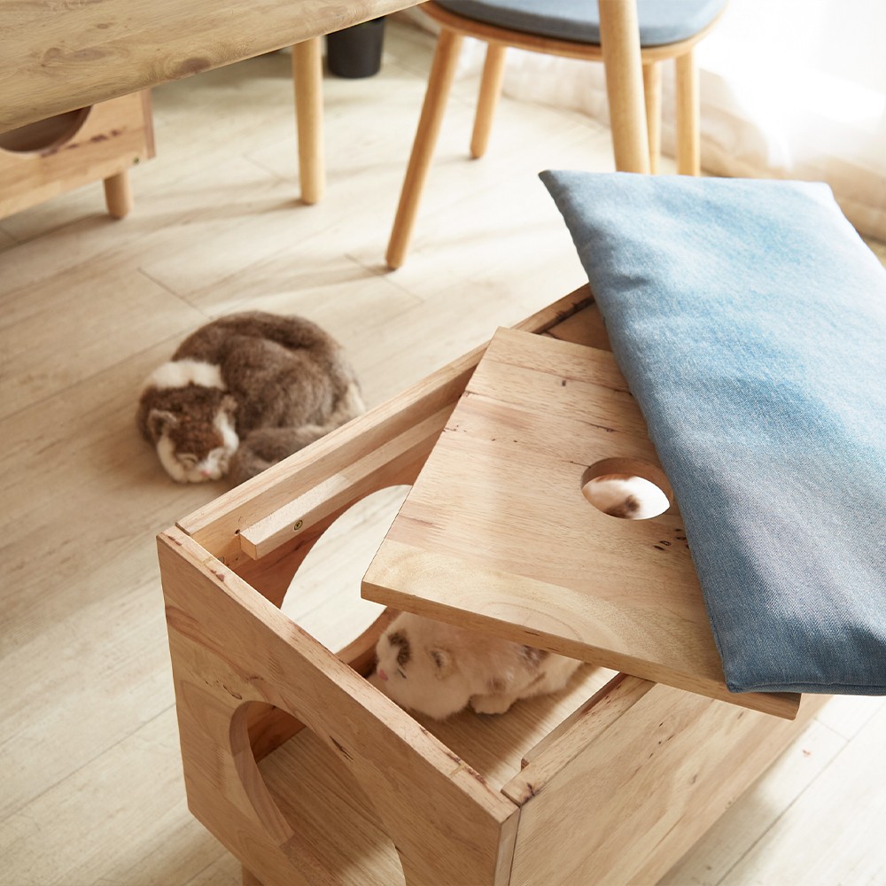 Σπιτάκι γάτας Nextdeco Natural μασίφ ξύλο. Ανακάλυψε το έξυπνο, eco-friendly 2 σε 1 έπιπλο, ιδανικό για μικρούς χώρους. Το ξύλινο παγκάκι διαθέτει άνετο κάθισμα στο επάνω μέρος και φωλίτσα για γάτες στο κάτω μέρος, προσφέροντας πρακτικότητα και αισθητική σε ένα κομμάτι.