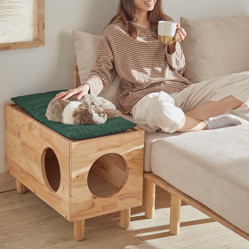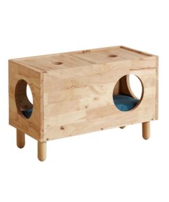 Σπιτάκι γάτας- τραπέζι βοηθητικό Nextdeco Natural μασίφ ξύλο Υ47x73x35εκ.