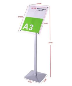 Επαγγελματικό επιδαπέδιο stand παρουσίασης με θήκη Α3, ιδανικό για χρήση σε χώρους εστίασης, ξενοδοχεία, καταστήματα και εκθέσεις.