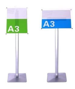 Επαγγελματικό επιδαπέδιο stand παρουσίασης με θήκη Α3, ιδανικό για χρήση σε χώρους εστίασης, ξενοδοχεία, καταστήματα και εκθέσεις.