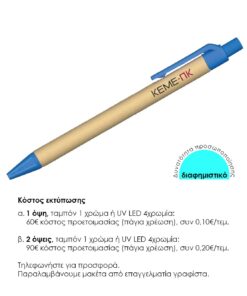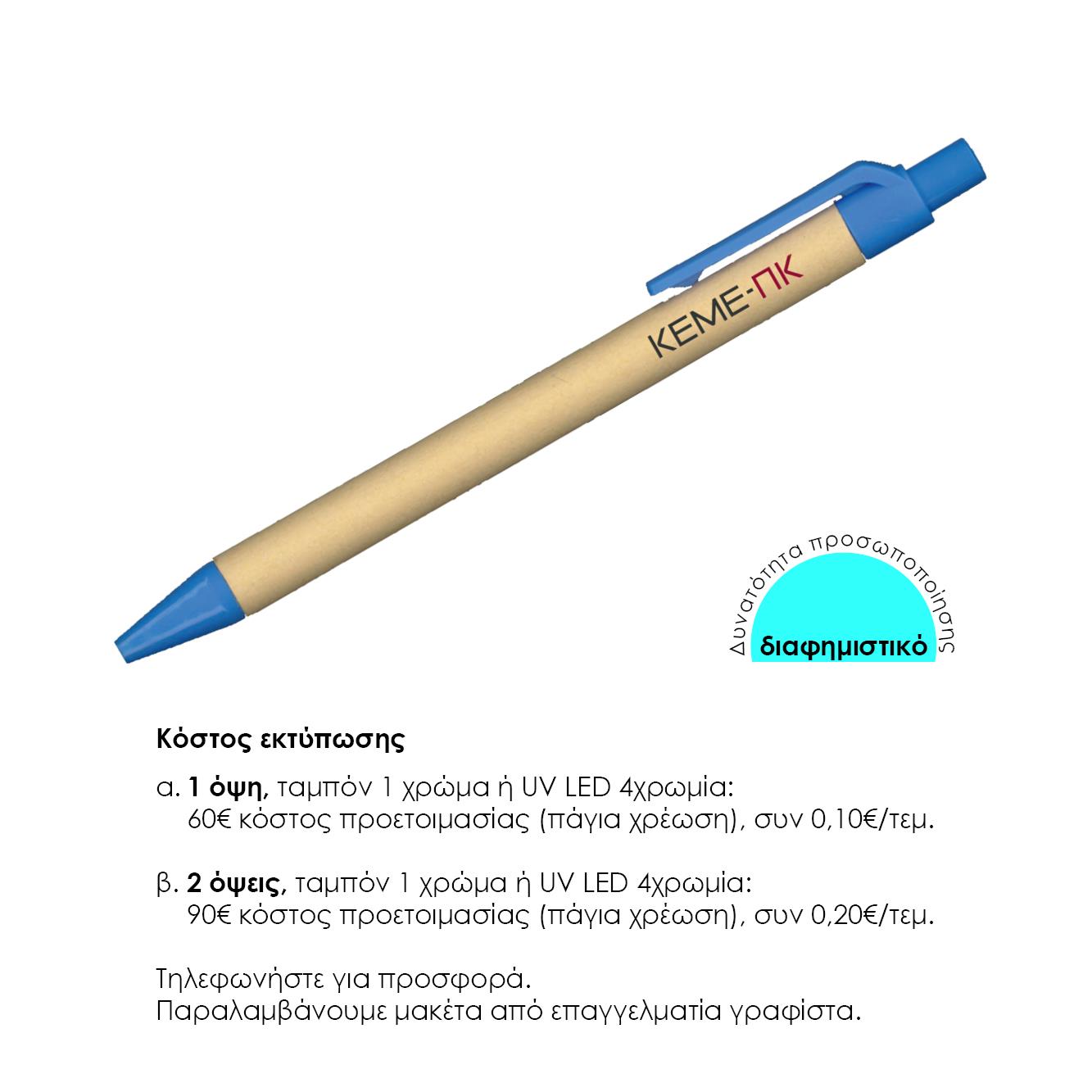 Στυλό eco μπλε 1mm. Δυνατότητα εκτύπωσης.