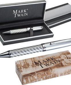 Στυλό πολυτελείας από μέταλλο, ασημένιο carbon με κλιπ σε πολυτελές κουτί δώρου Υ14,7xØ1,3εκ.